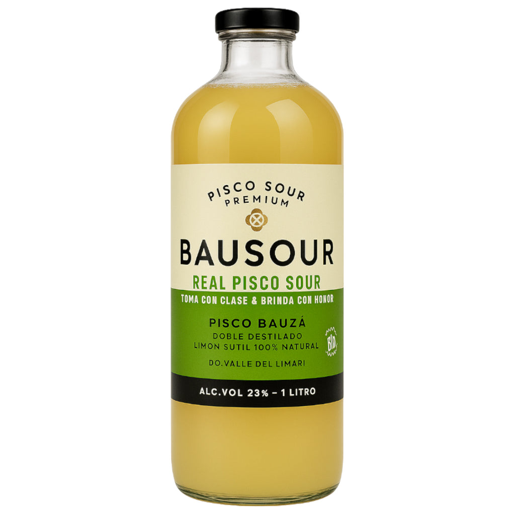 Pisco Sour Bauzá 100% natural hecho con Pisco Bauzá doble destilado y jugo de limón sutil exprimido en frio.